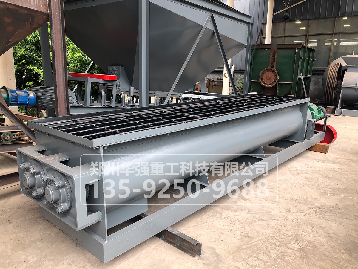 工作原理:當(dāng)干粉狀物料由給料機(jī)定量通過進(jìn)料口均勻進(jìn)入槽體后,動力傳動機(jī)械帶動裝有多組葉片的螺旋形主軸轉(zhuǎn)動,通過對嚙合傳動齒輪帶動被動螺旋軸與主軸作等速相對轉(zhuǎn)動,從而使物料被攪和和并推進(jìn)至槽體加濕段,在物料被推進(jìn)至加濕段后,加濕器自動對物料進(jìn)行噴濕,進(jìn)而至槽體后攪拌段進(jìn)行充分?jǐn)嚭停?dāng)物料達(dá)到可控濕度后由出料口卸出,進(jìn)入下一道工序。