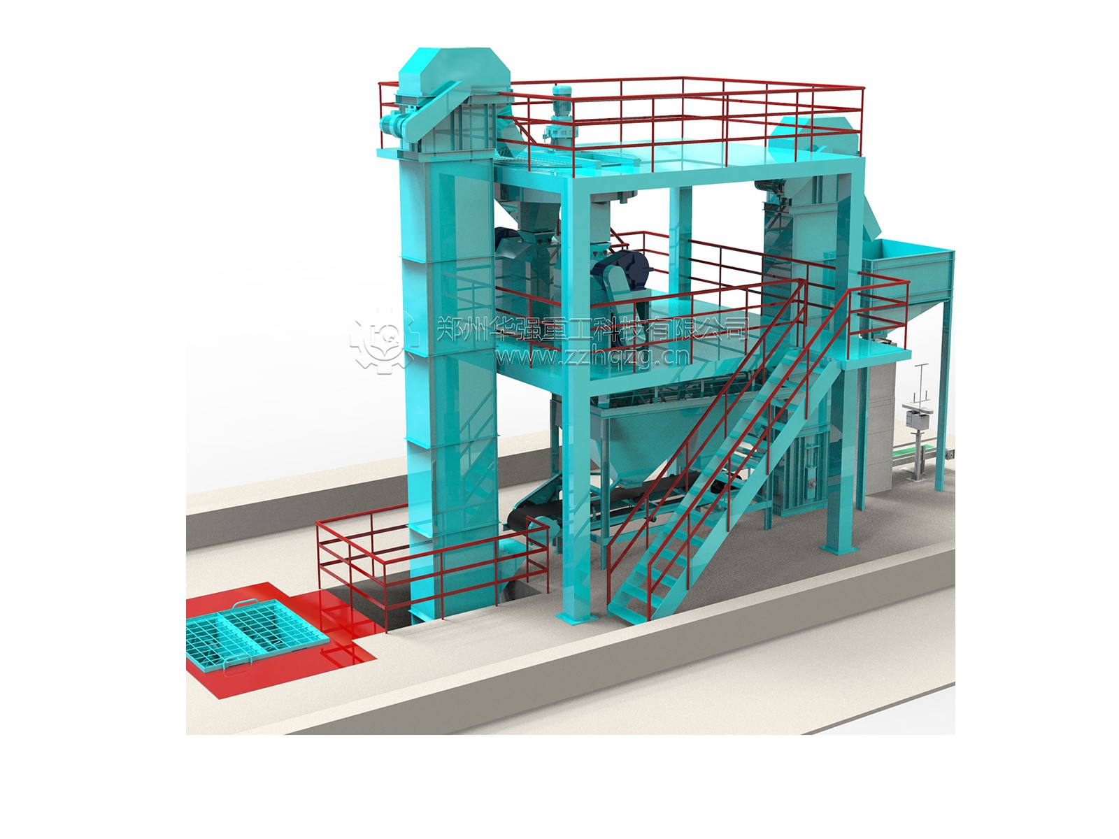 對輥擠壓造粒生產(chǎn)線生產(chǎn)過程中物料與對輥摩擦系數(shù)小,溫升低,能耗低,無污染。同時為滿足客戶需要,達到"投資小,見效快、經(jīng)濟效益好”的目的。還根據(jù)用戶需要配置有粉碎機、攪拌機、斗提機、給料機、篩選機、包裝稱等輔助無機肥生產(chǎn)線的整套設備。