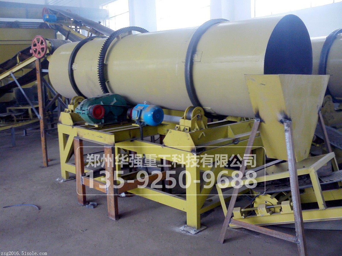 3.后處理:進(jìn)一步對堆肥成品進(jìn)行篩分,篩下物根據(jù)水分含量高低分別進(jìn)行處理。篩下物圓盤造粒機造粒造粒后,送入華強重工有機肥專用烘干機,進(jìn)行烘干,按比例添加各種添加物后攪拌混合后制成成品,進(jìn)行分裝,入庫待售。篩上物返回粉碎工序進(jìn)行回用?! ?/p>